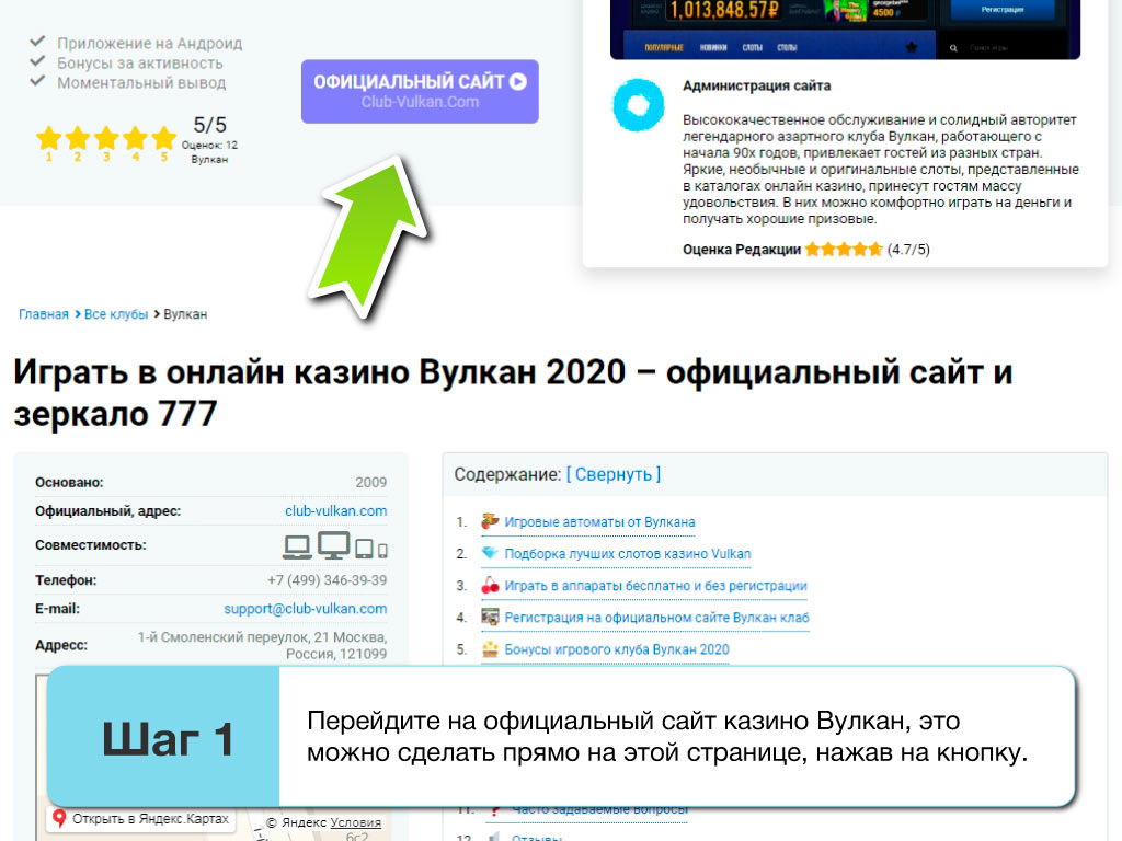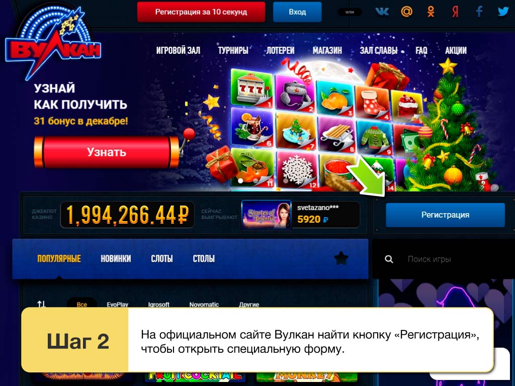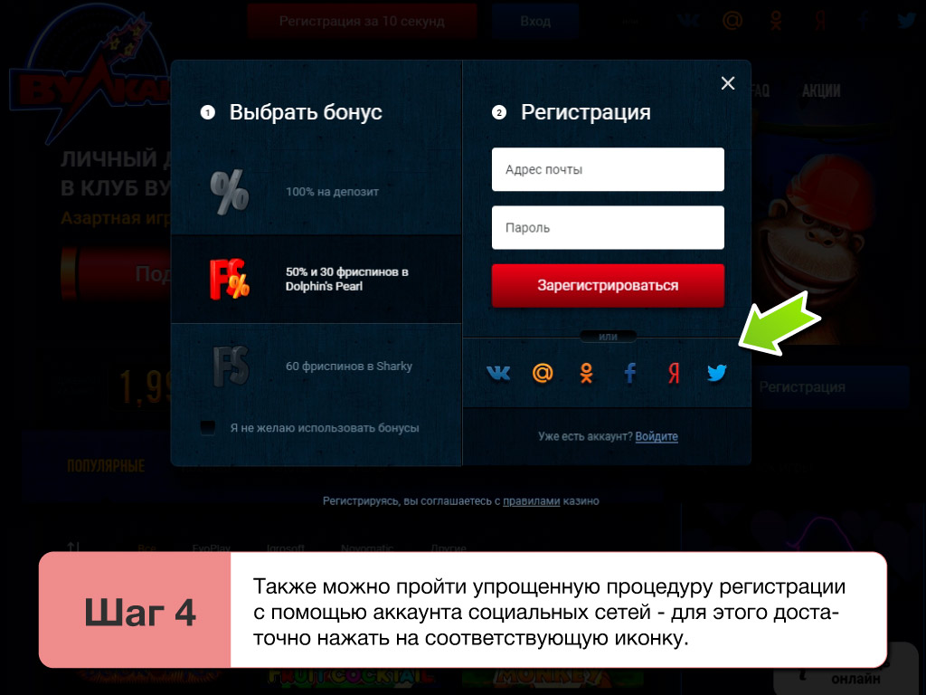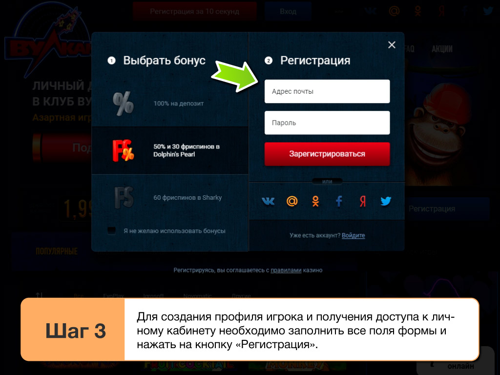 Инструкция по регистрации на официальном сайте Вулкан клаб
