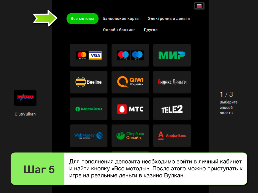 Вывод средств и пополнение депозита в Vulkan club 2025