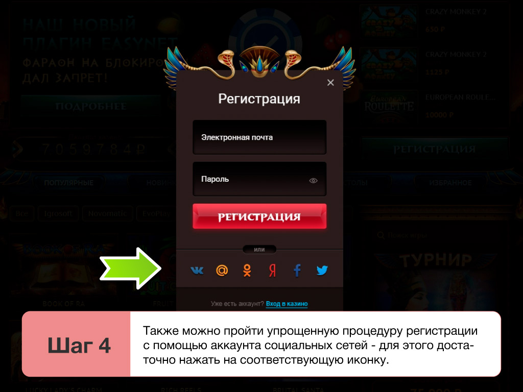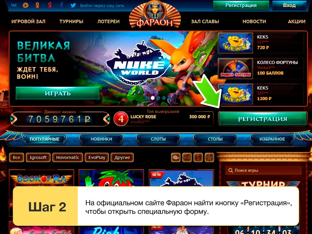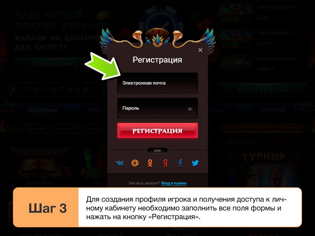 Чтобы начать играть и выигрывать на сайте ФараонБет в 2025 году нужно: