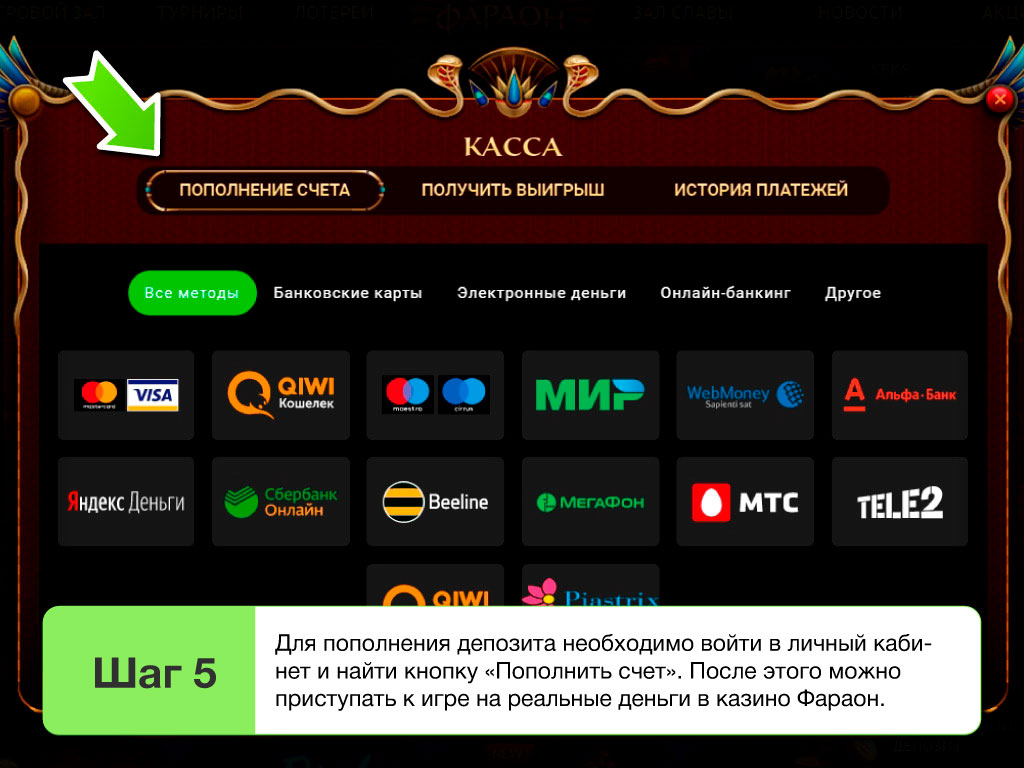 💳Ввод и вывод средств с сайта ФараонБет в 2025 году