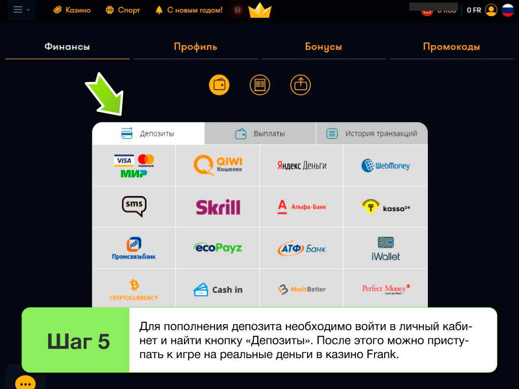 Frank casino 2025 на деньги - обзор официального сайта и зеркала